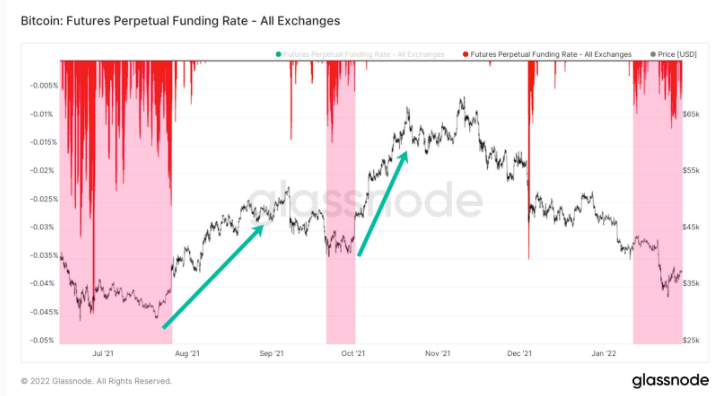 - 마지막 추세 (위 사진에서는 2022년 2월)를 보면 현재도 장기간 Funding Rate가 음수의 상황을 이어감을 알 수 있다.